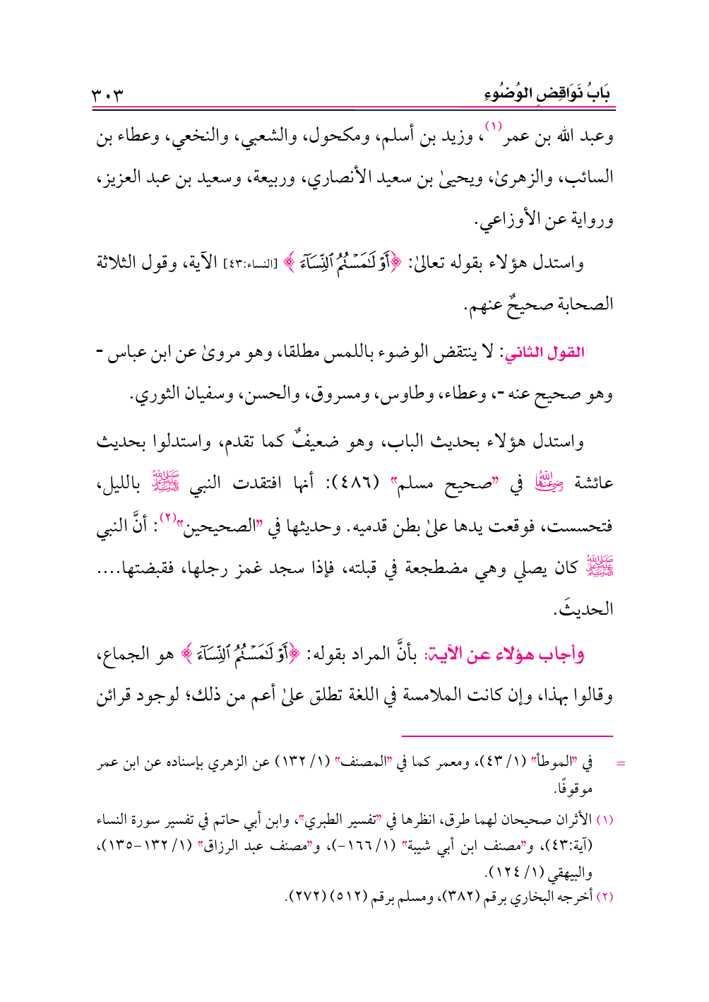 (¬١) الأثران صحيحان لهما طرق، انظرها في «تفسير الطبري»، وابن أبي حاتم في تفسير سورة النساء (آية:٤٣)، و «مصنف ابن أبي شيبة» (١/ ١٦٦ - )، و «مصنف عبد الرزاق» (١/ ١٣٢ - ١٣٥)، والبيهقي (١/ ١٢٤).