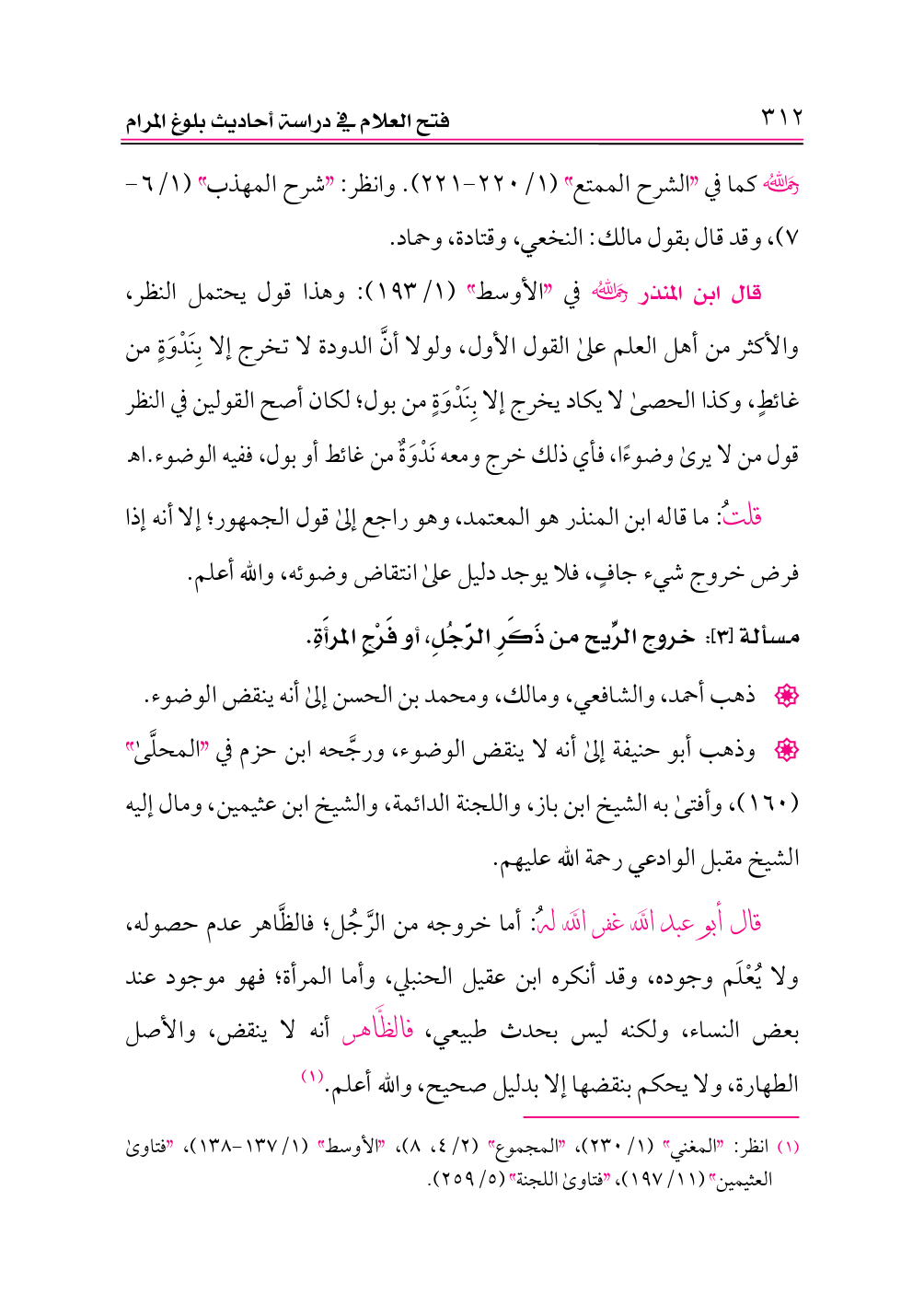 (¬١) انظر: «المغني» (١/ ٢٣٠)، «المجموع» (٢/ ٤، ٨)، «الأوسط» (١/ ١٣٧ - ١٣٨)، «فتاوى العثيمين» (١١/ ١٩٧)، «فتاوى اللجنة» (٥/ ٢٥٩).