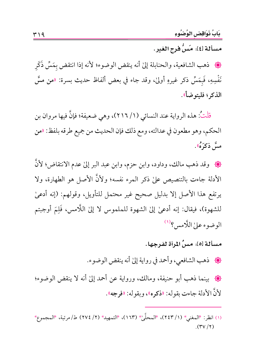 (¬١) انظر: «المغني» (١/ ٢٤٣)، «المحلَّى» (١٦٣)، «التمهيد» (٢/ ٢٧٤) ط/مرتبة، «المجموع» (٢/ ٣٧).