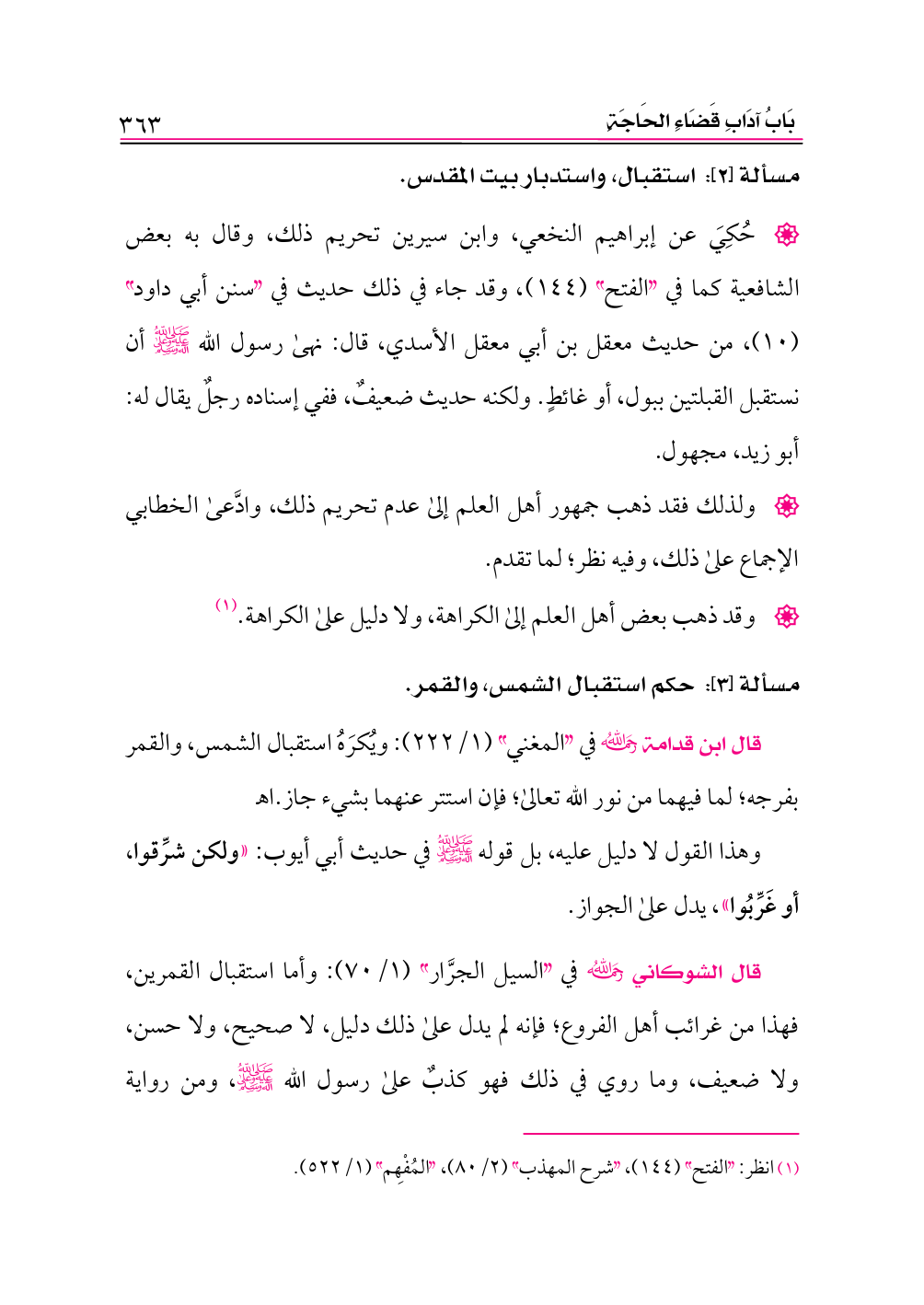 مسألة [٢]: استقبال، واستدبار بيت المقدس.