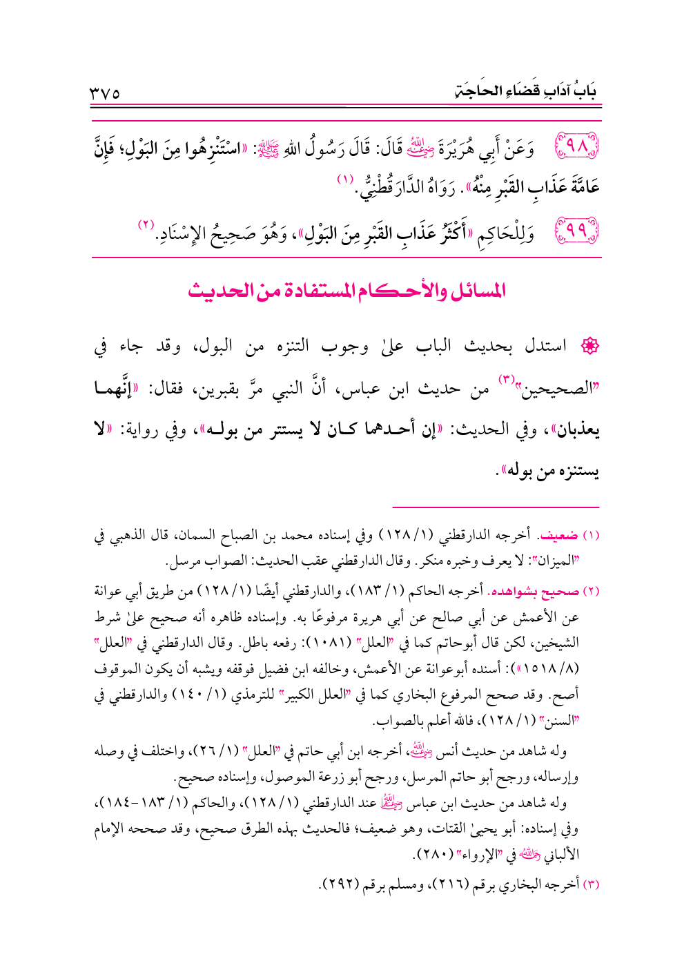 المسائل والأحكام المستفادة من الحديث