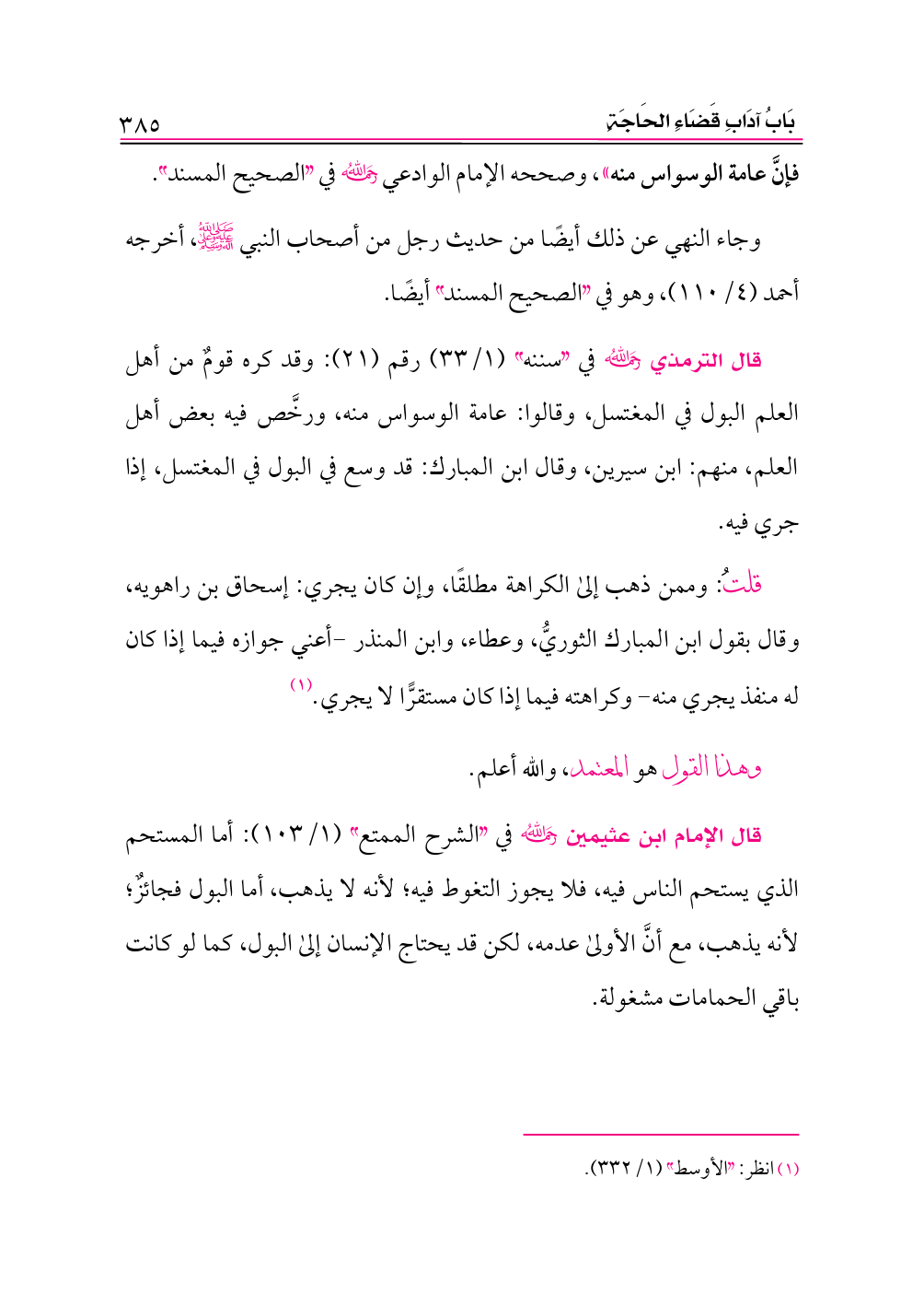 فإنَّ عامة الوسواس منه»، وصححه الإمام الوادعي -رحمه الله- في «الصحيح المسند».