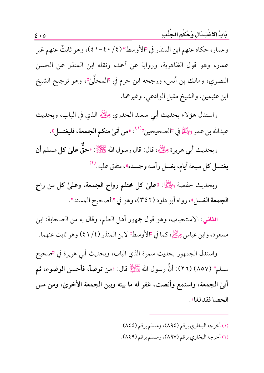 وبحديث حفصة -رضي الله عنها-: «على كل محتلم رواح الجمعة، وعلى كل من راح الجمعة الغسل»، رواه أبو داود (٣٤٢)، وهو في «الصحيح المسند».
