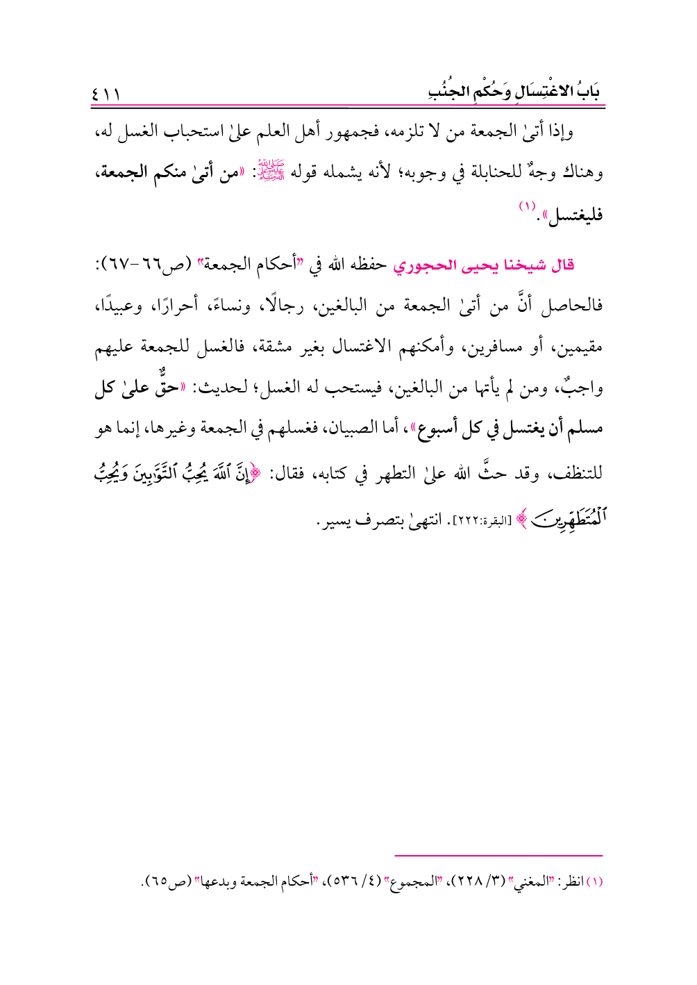 (¬١) انظر: «المغني» (٣/ ٢٢٨)، «المجموع» (٤/ ٥٣٦)، «أحكام الجمعة وبدعها» (ص ٦٥).