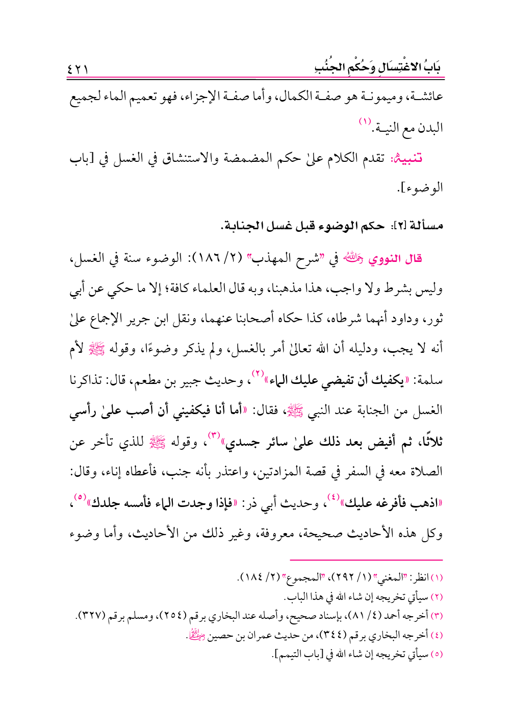 (¬١) انظر: «المغني» (١/ ٢٩٢)، «المجموع» (٢/ ١٨٤).