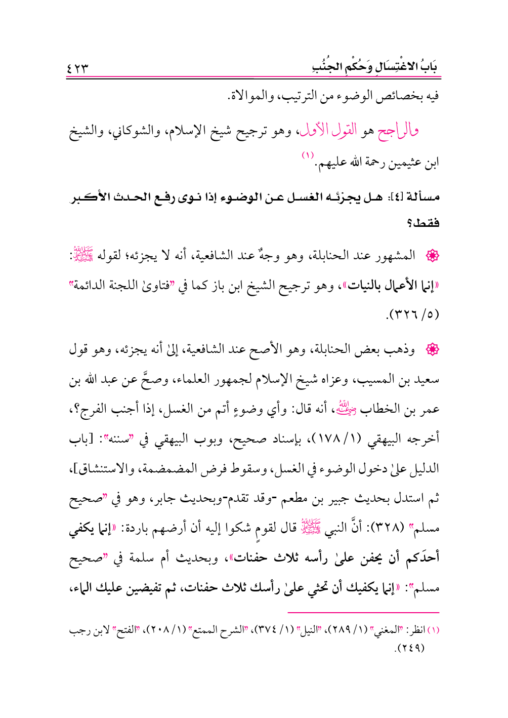 (¬١) انظر: «المغني» (١/ ٢٨٩)، «النيل» (١/ ٣٧٤)، «الشرح الممتع» (١/ ٢٠٨)، «الفتح» لابن رجب (٢٤٩).
