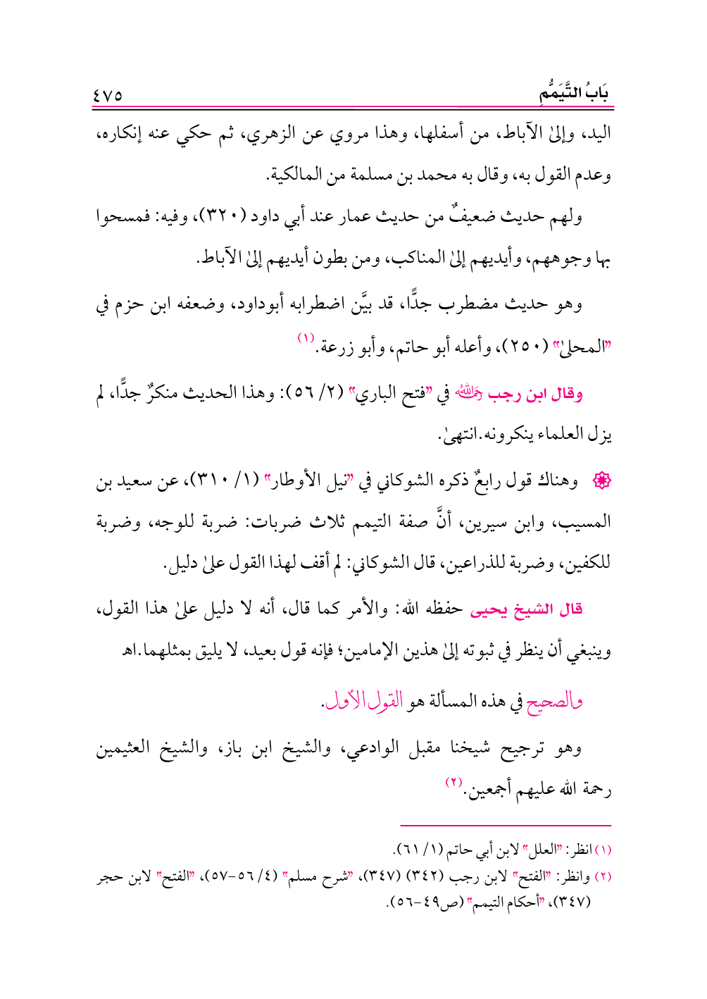 وهو ترجيح شيخنا مقبل الوادعي، والشيخ ابن باز، والشيخ العثيمين رحمة الله عليهم أجمعين. (¬٢)