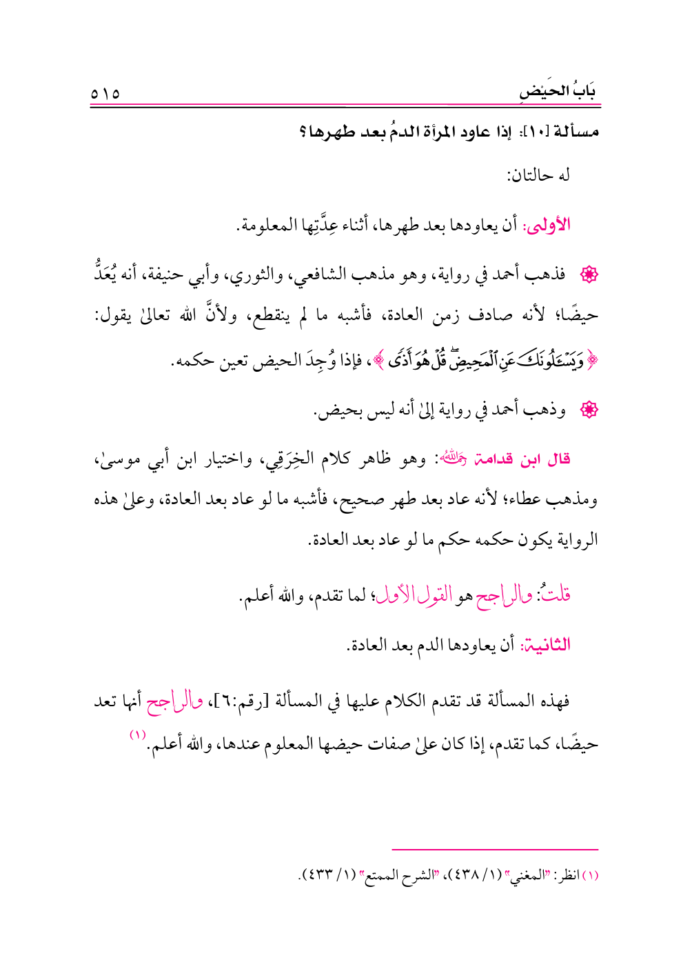(¬١) انظر: «المغني» (١/ ٤٣٨)، «الشرح الممتع» (١/ ٤٣٣).