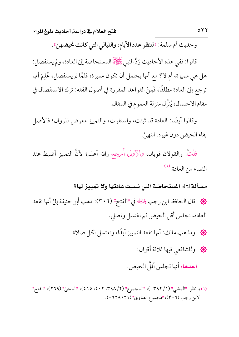 وحديث أم سلمة: «لتنظر عدد الأيام، والليالي التي كانت تحيضهن».