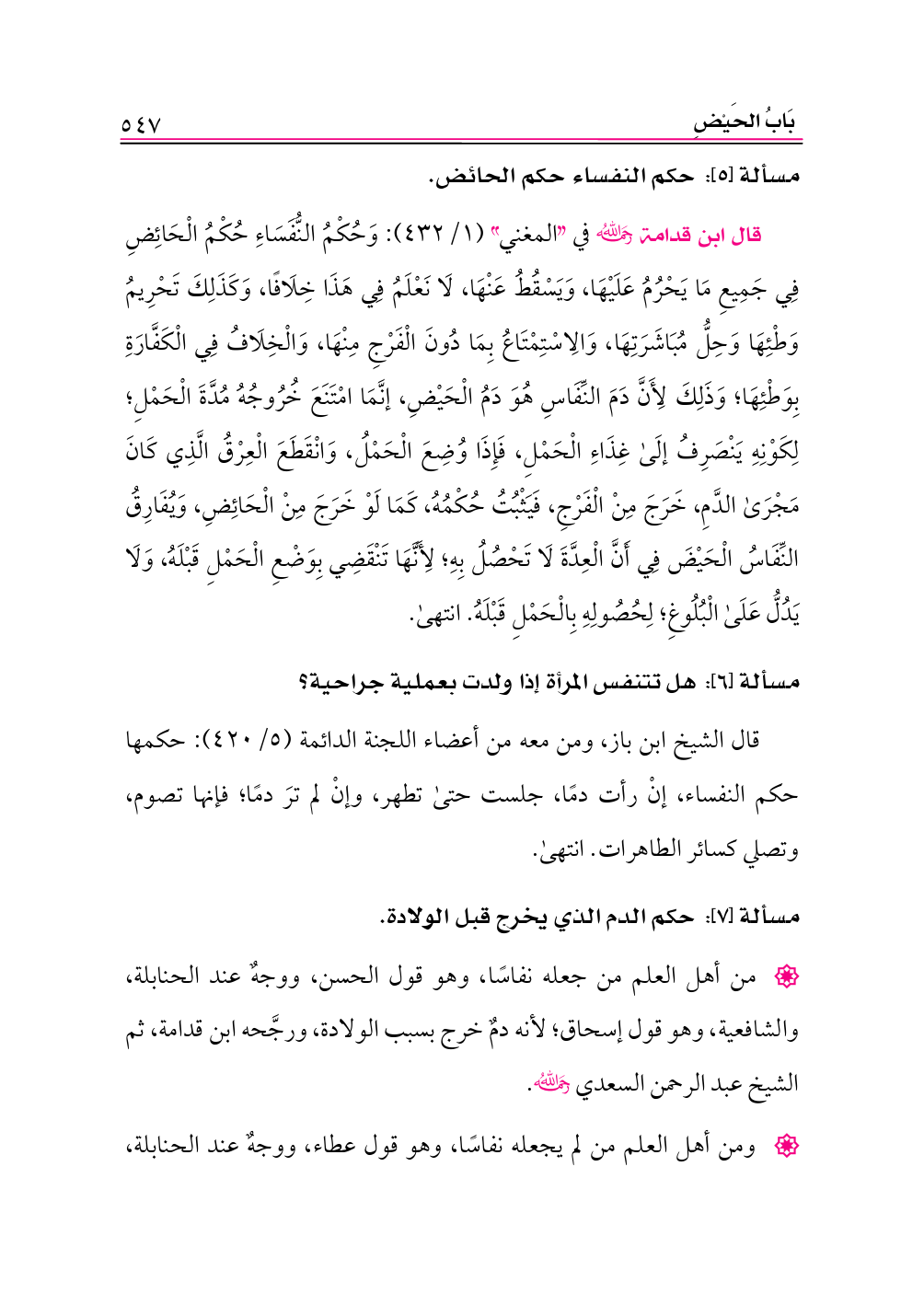 مسألة [٧]: حكم الدم الذي يخرج قبل الولادة.