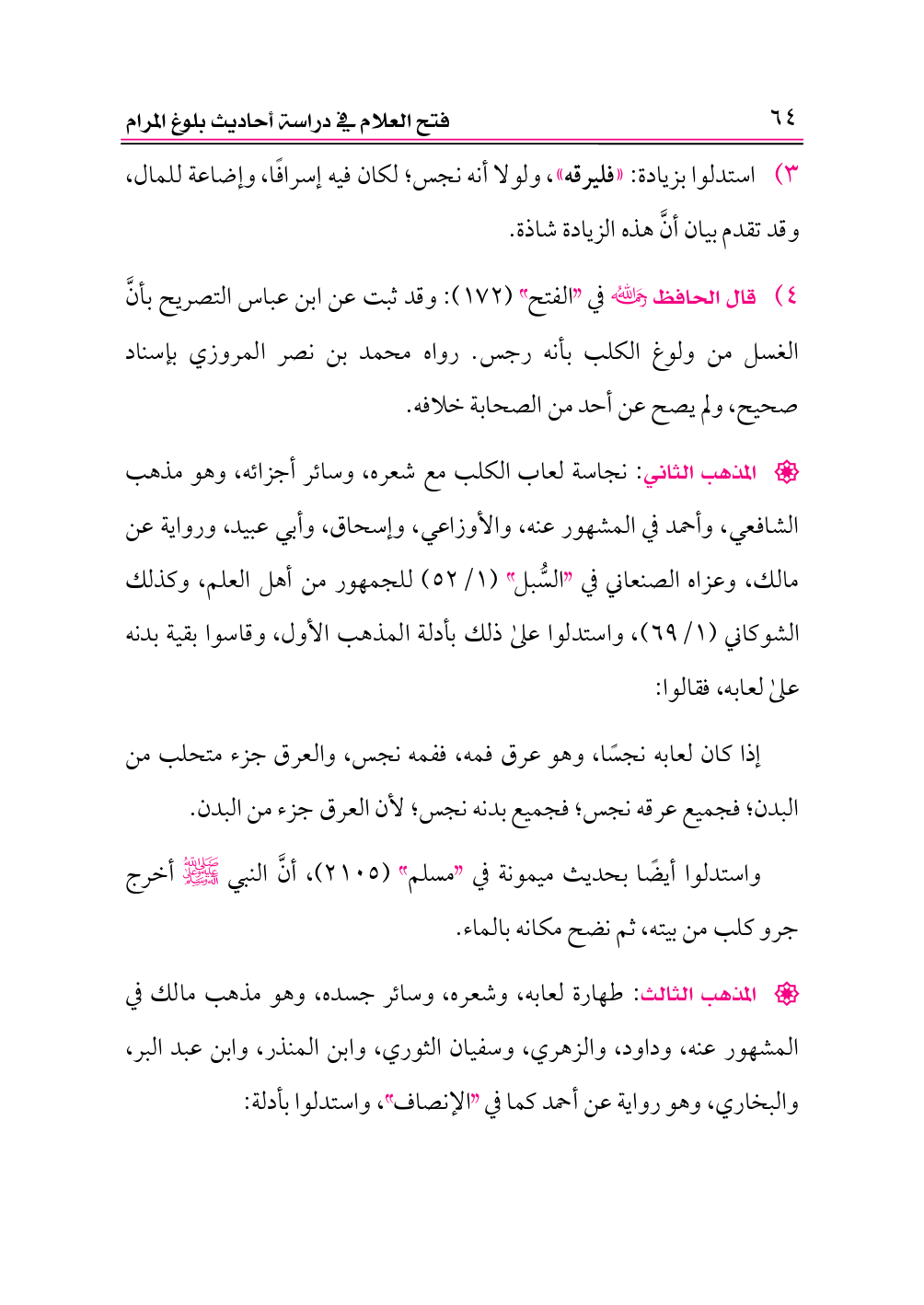 ٤) قال الحافظ -رحمه الله- في «الفتح» (١٧٢): وقد ثبت عن ابن عباس التصريح بأنَّ الغسل من ولوغ الكلب بأنه رجس. رواه محمد بن نصر المروزي بإسناد صحيح، ولم يصح عن أحد من الصحابة خلافه.