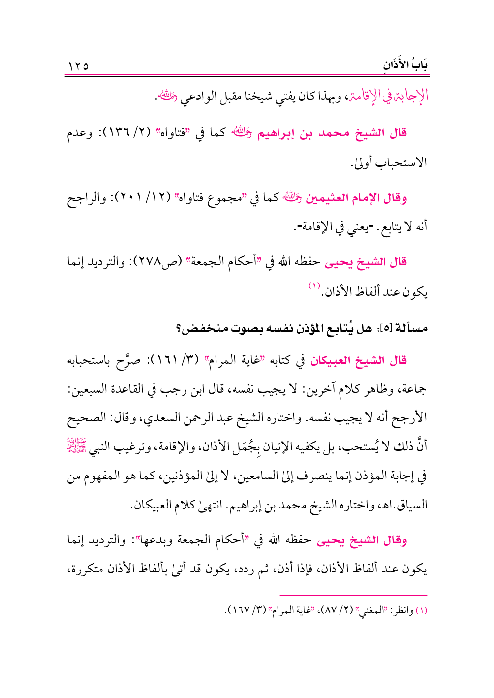 وقال الشيخ يحيى حفظه الله في «أحكام الجمعة وبدعها»: والترديد إنما يكون عند ألفاظ الأذان، فإذا أذن، ثم ردد، يكون قد أتى بألفاظ الأذان متكررة،