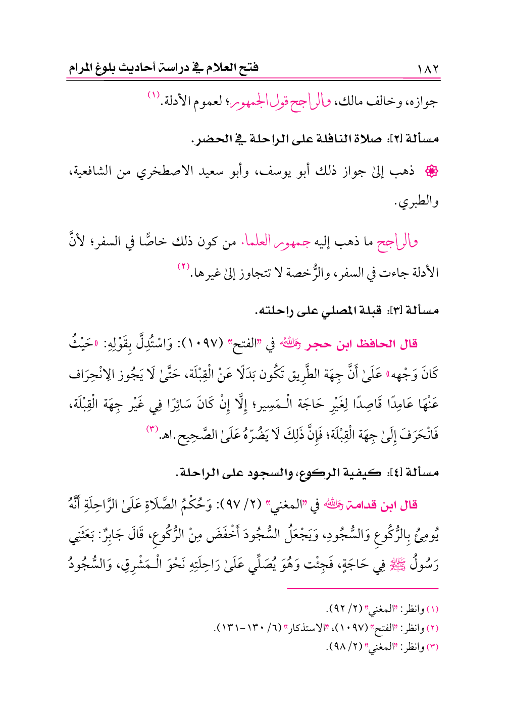 مسألة [٢]: صلاة النافلة على الراحلة في الحضر.