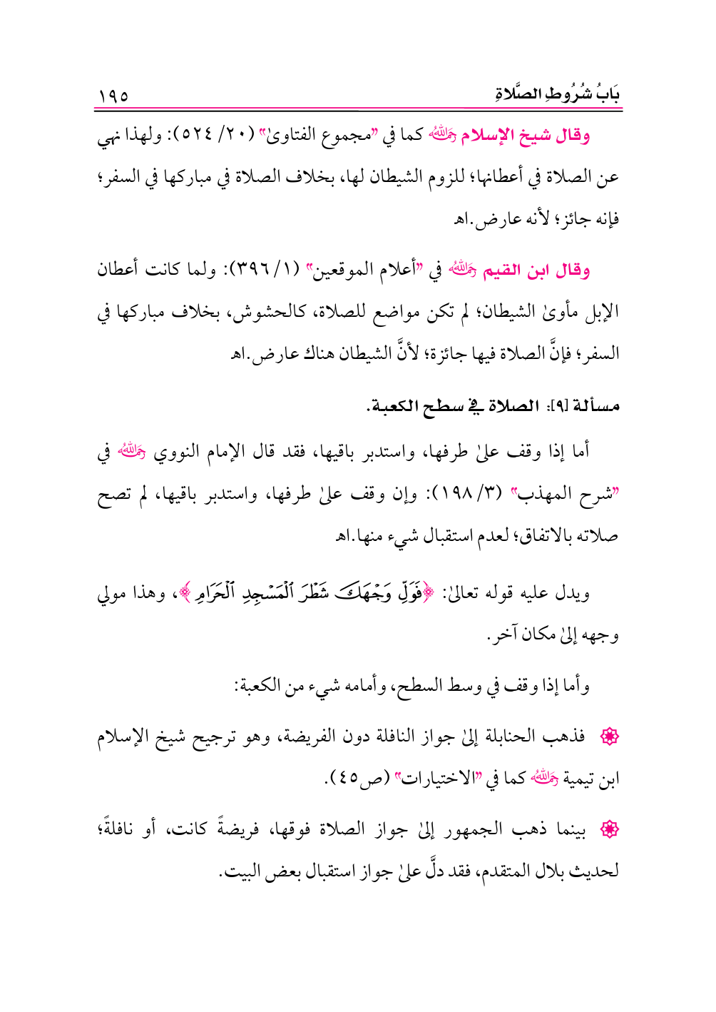 مسألة [٩]: الصلاة في سطح الكعبة.