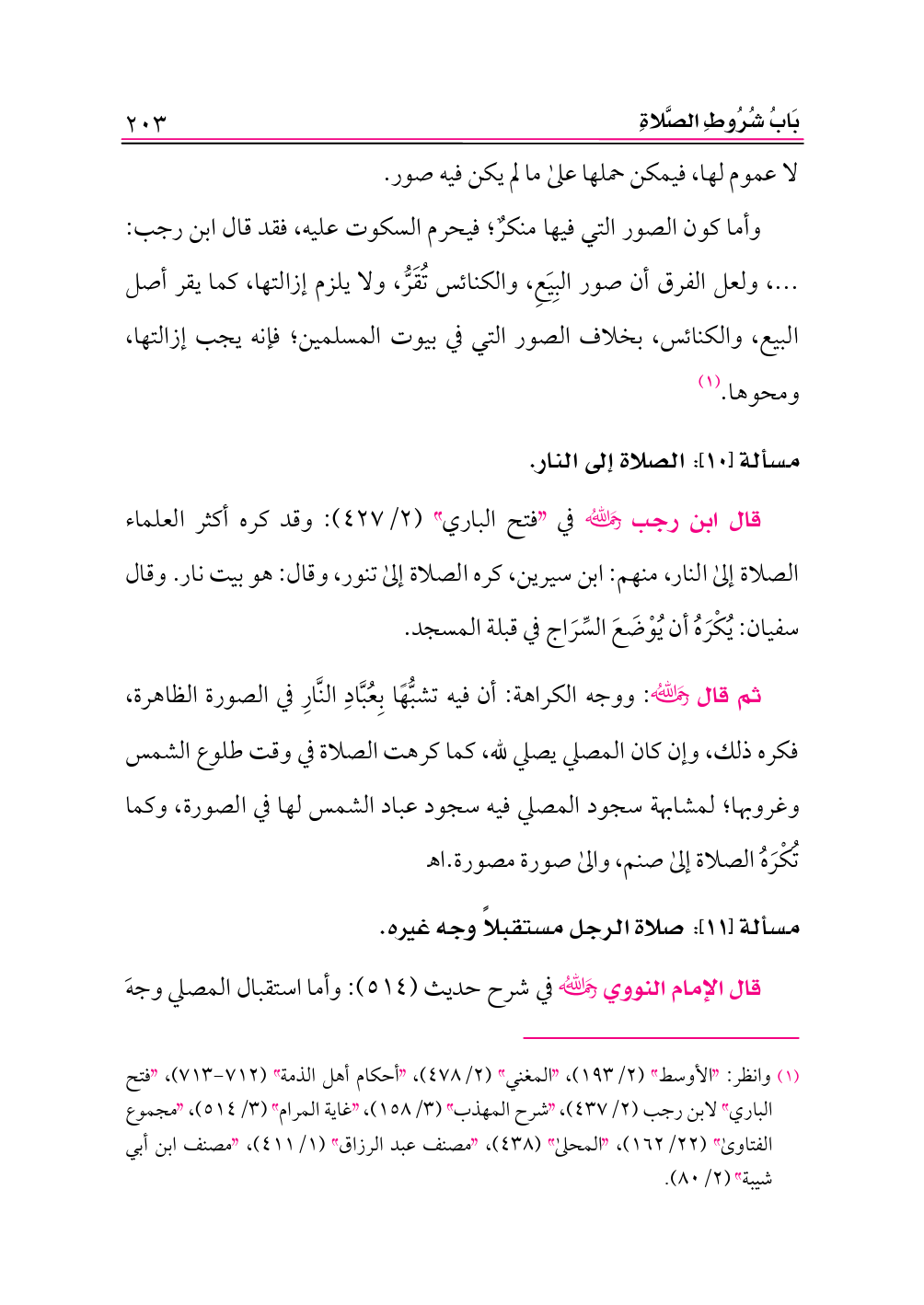 مسألة [١٠]: الصلاة إلى النار.