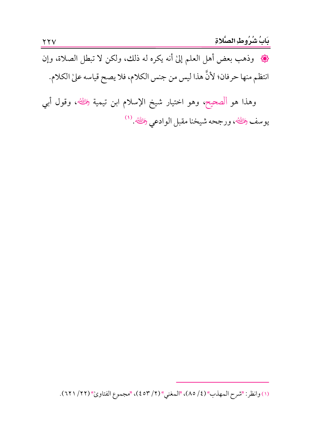 (¬١) وانظر: «شرح المهذب» (٤/ ٨٥)، «المغني» (٢/ ٤٥٣)، «مجموع الفتاوى» (٢٢/ ٦٢١).