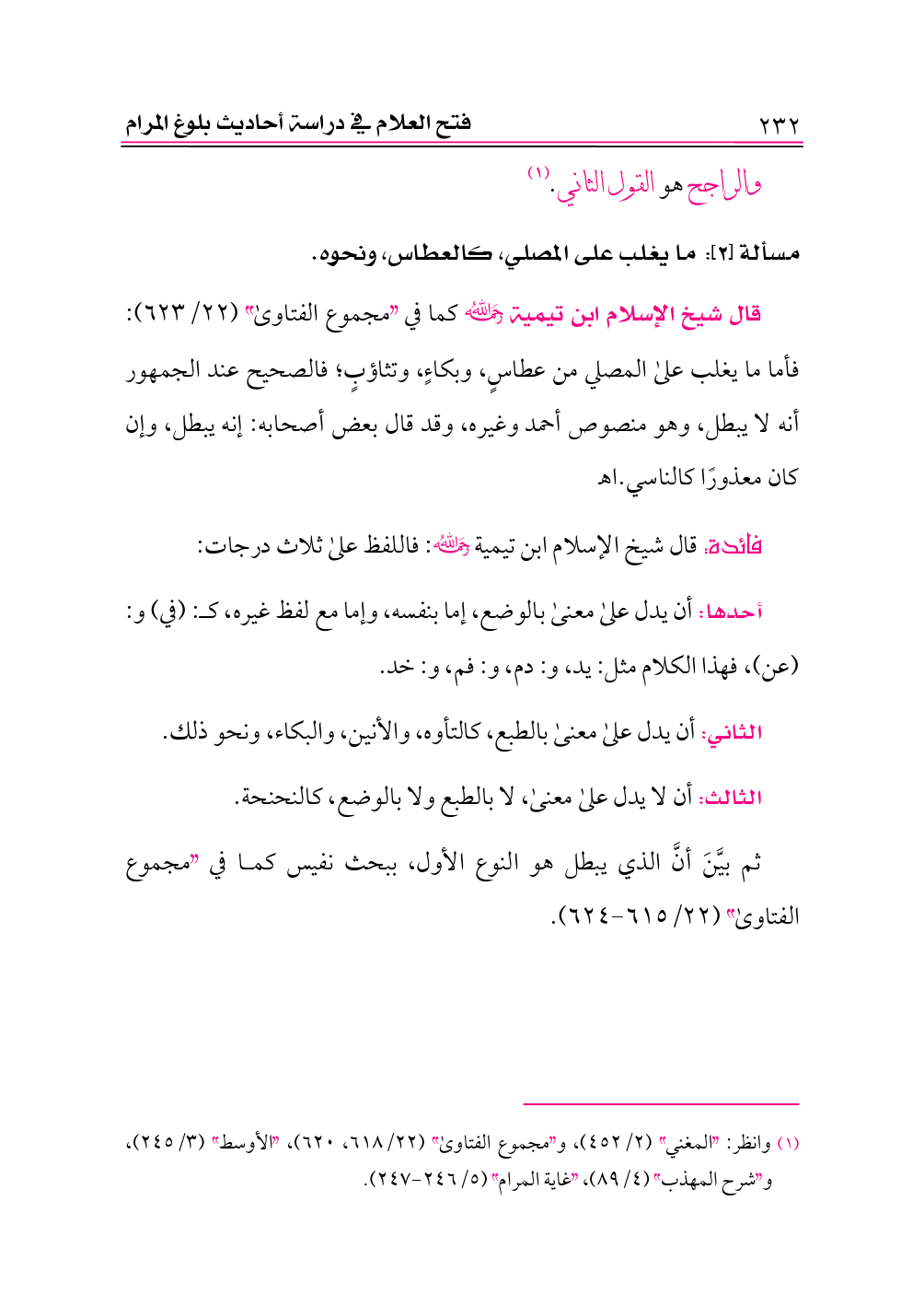 (¬١) وانظر: «المغني» (٢/ ٤٥٢)، و «مجموع الفتاوى» (٢٢/ ٦١٨، ٦٢٠)، «الأوسط» (٣/ ٢٤٥)، و «شرح المهذب» (٤/ ٨٩)، «غاية المرام» (٥/ ٢٤٦ - ٢٤٧).