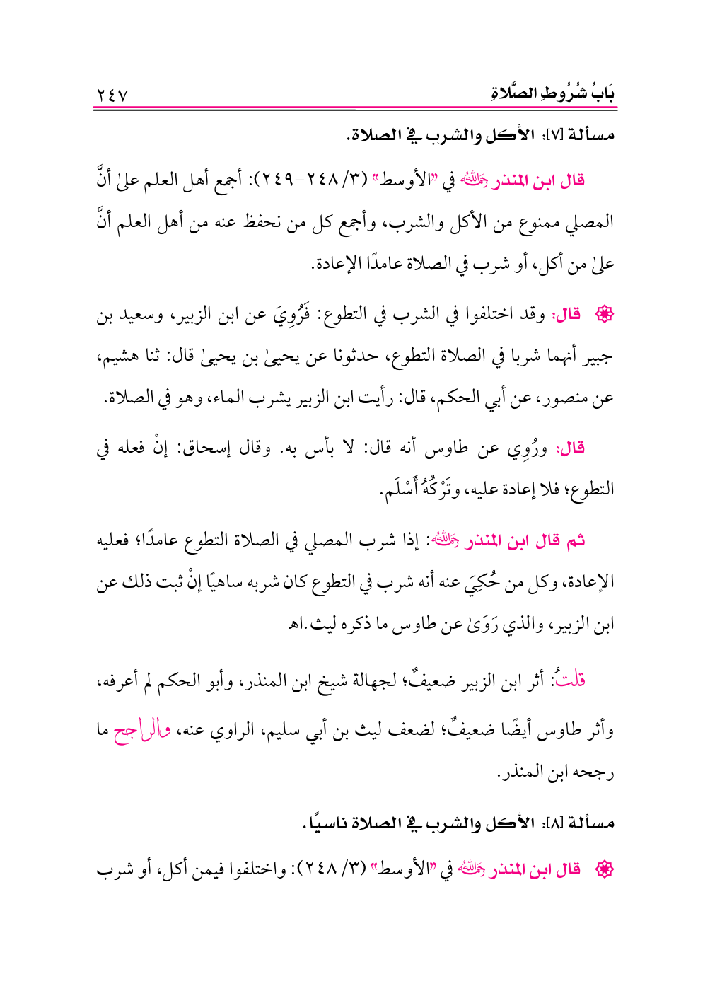 مسألة [٨]: الأكل والشرب في الصلاة ناسيًا.