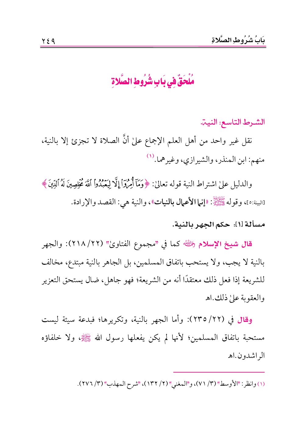 مُلْحَقٌ فِي بَابِ شُرُوطِ الصَّلاةِ
