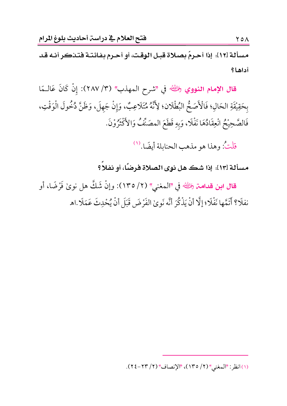 (¬١) انظر: «المغني» (٢/ ١٣٥)، «الإنصاف» (٢/ ٢٣ - ٢٤).