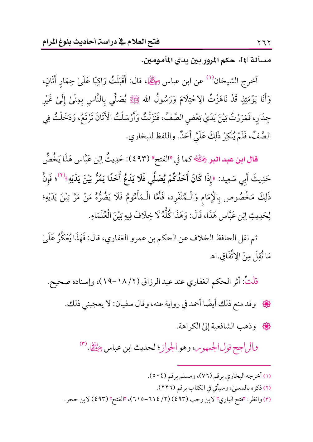 مسألة [٤]: حكم المرور بين يدي المأمومين.