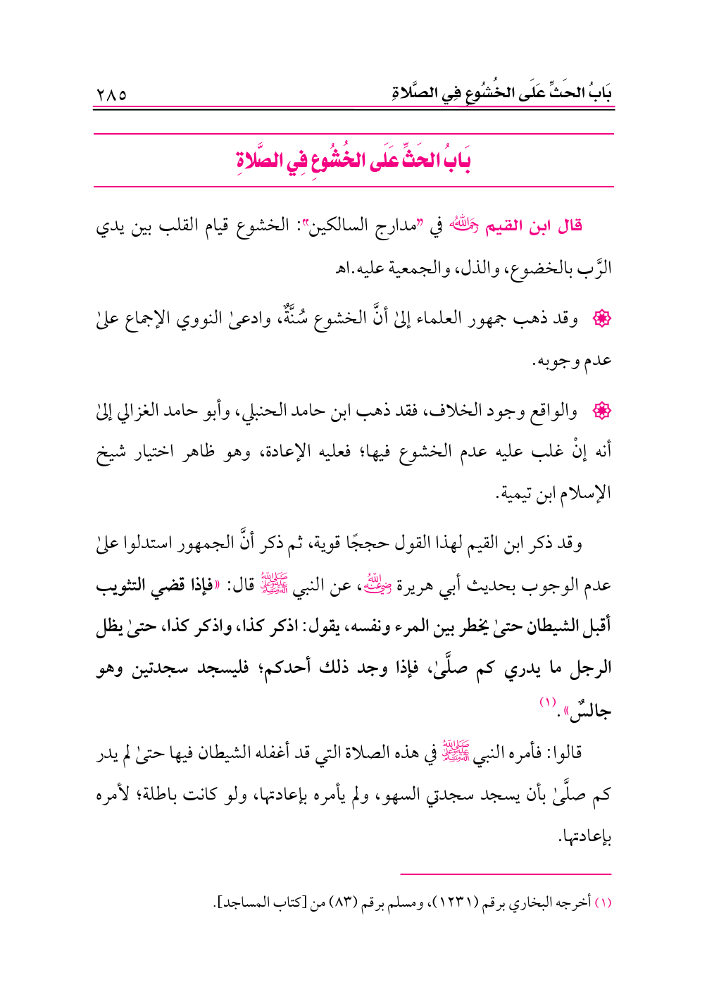 (¬١) أخرجه البخاري برقم (١٢٣١)، ومسلم برقم (٨٣) من [كتاب المساجد].