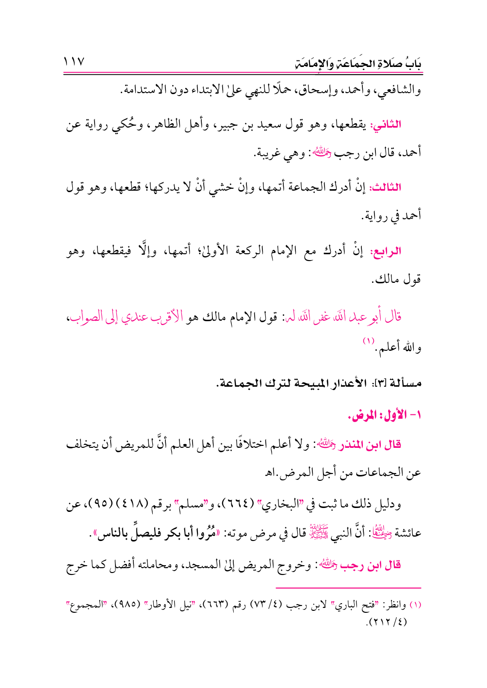 النبي - صلى الله عليه وسلم - يهادَى بين رجلين، وقد قال ابن مسعود: ولقد كان الرجل يهادَى بين رجلين حتى يُقام في الصف. اهـ