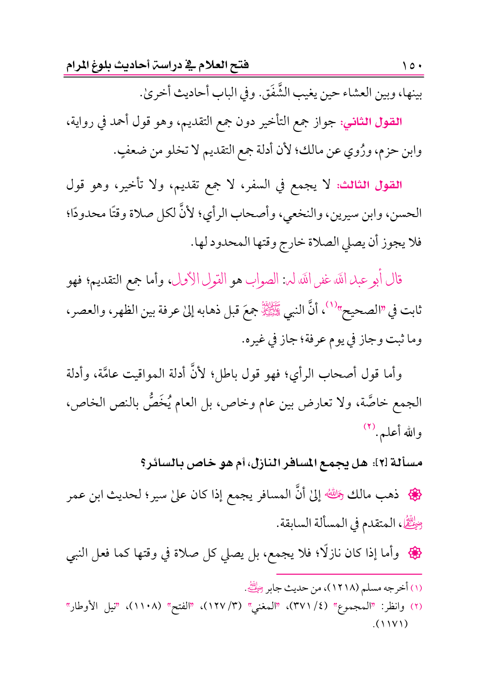 والصواب قول الجمهور، وما استدل به مالك يدل على جواز الأمرين، لا على عدم جواز الجمع للنازل، والله أعلم. (¬٢)