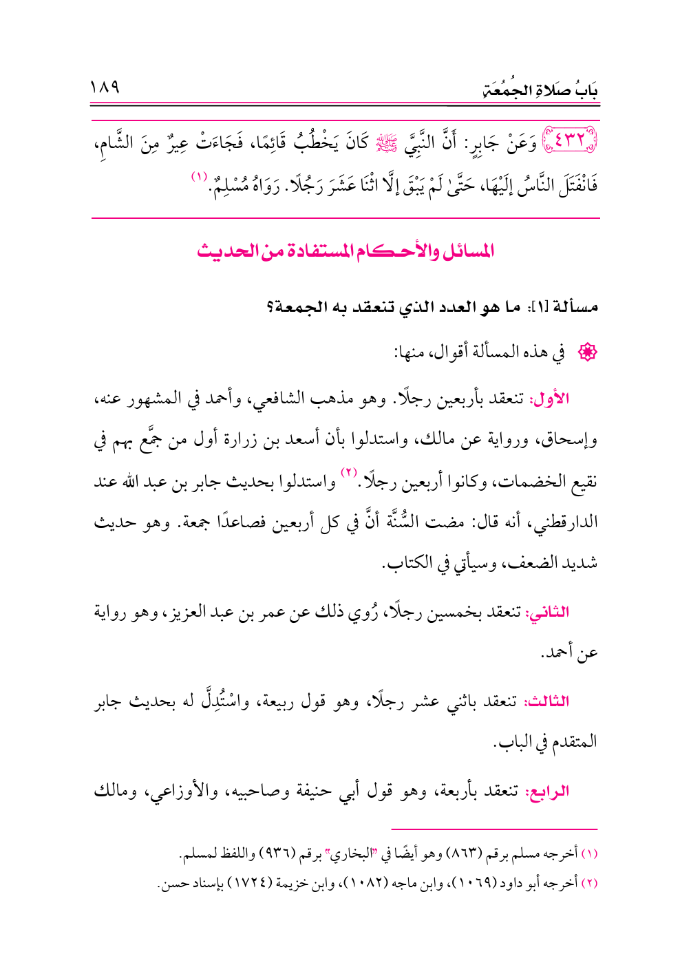 (¬١) وانظر: «فتح الباري» لابن رجب (٥/ ٥٢٤)، «أحكام الجمعة» (ص ٤٨)، «المغني» (٣/ ٢٠٤ - )، «المجموع» (٤/ ٥٠٤)، «فتاوى اللجنة» (٨/ ٢١٥) (٨/ ١٧٨).