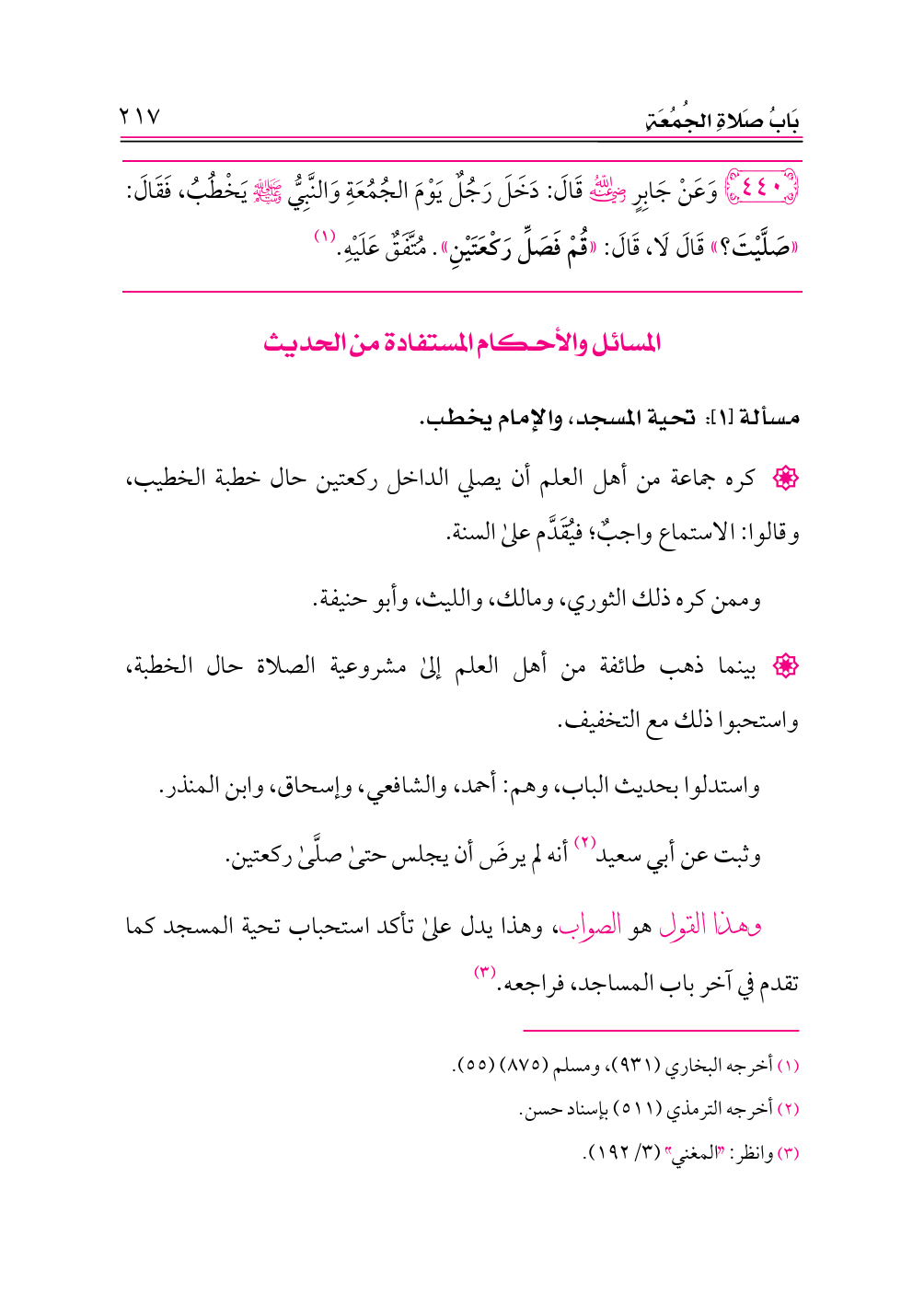 (¬١) وانظر: «المجموع» (٤/ ٥٢٩)، «الإنصاف» (٢/ ٣٩٢)، «روضة الطالبين» (٢/ ٣٣)، «الفروع» (٢/ ١٢٣)، «المنتقى» للباجي (١/ ١٨٩)، «خطبة الجمعة» (ص ٢٩٣).
