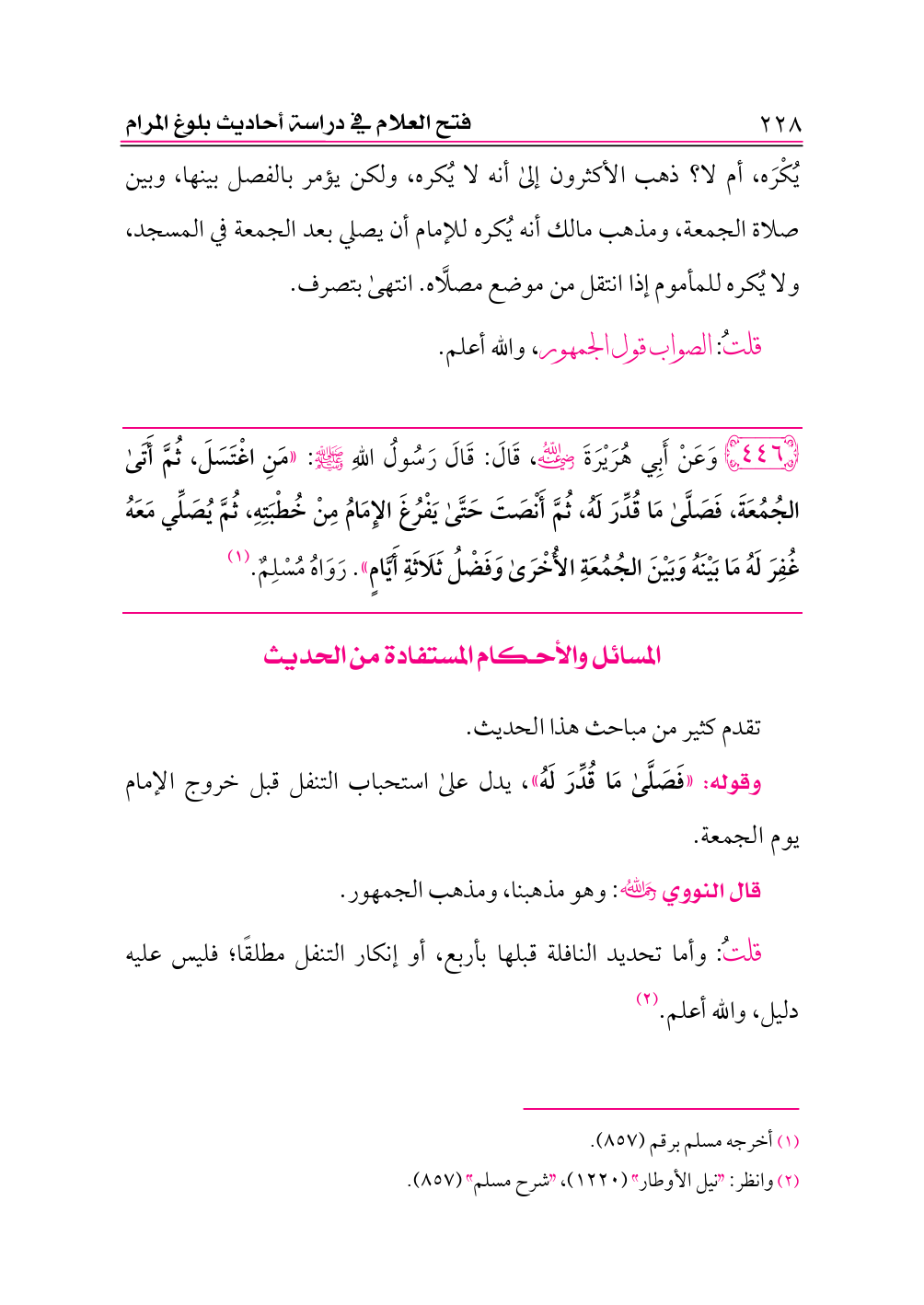 (¬٢) أخرجه مسلم برقم (٨٥٢) (١٥).