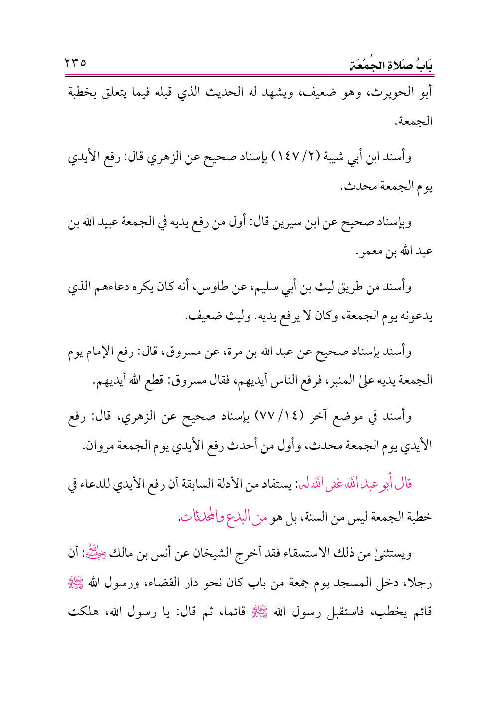 (¬١) انظر: «الفروع» (٢/ ١٢٥)، «خطبة الجمعة» للحجيلان» (ص ٣٤١)، «الموسوعة الفقهية الكويتية» (١/ ١١٥ - ).