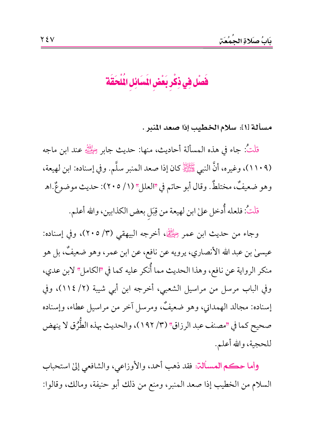 (¬٢) وانظر: «نيل الأوطار» (١٢١٥)، «أحكام الجمعة» (ص ١٧٨).