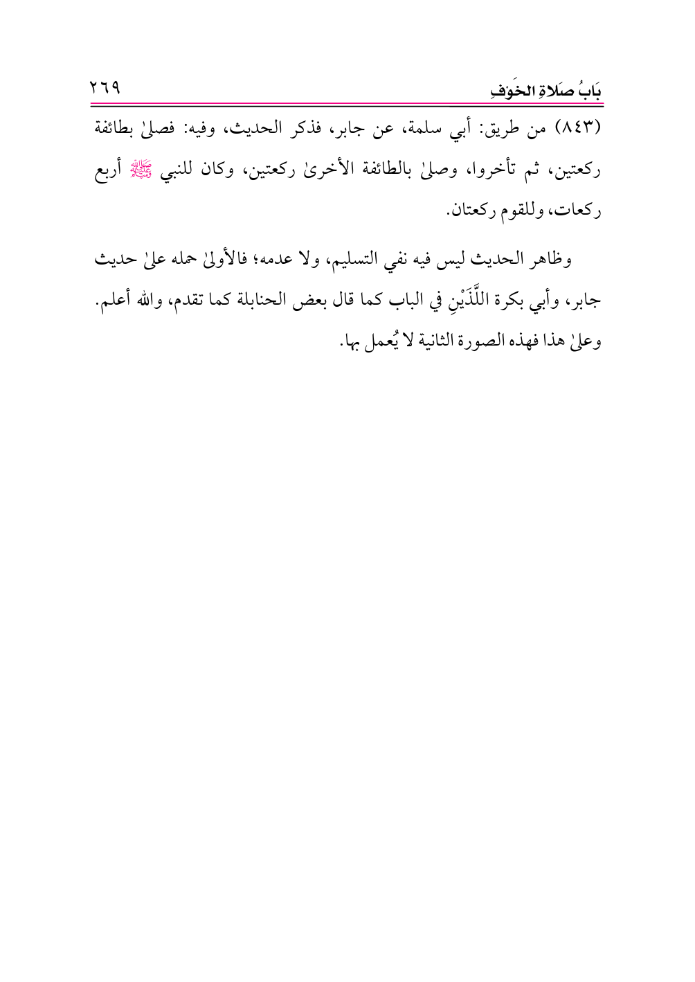 (¬٣) ضعيف جدًّا. أخرجه البزار كما في «كشف الأستار» (٦٧٨) بلفظ: «صلاة المسايفة ركعة» وفي إسناده محمد بن عبدالرحمن البيلماني وهو متروك، وأبوه، وهو ضعيف.