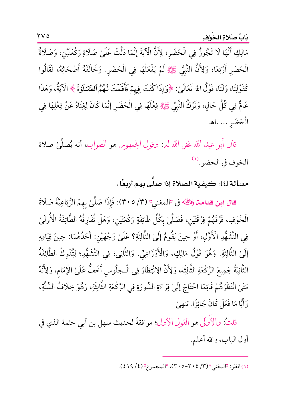 (¬١) وانظر: «المغني» (٣/ ٣١٦ - ٣١٧)، «المجموع» (٤/ ٤٣٣).
