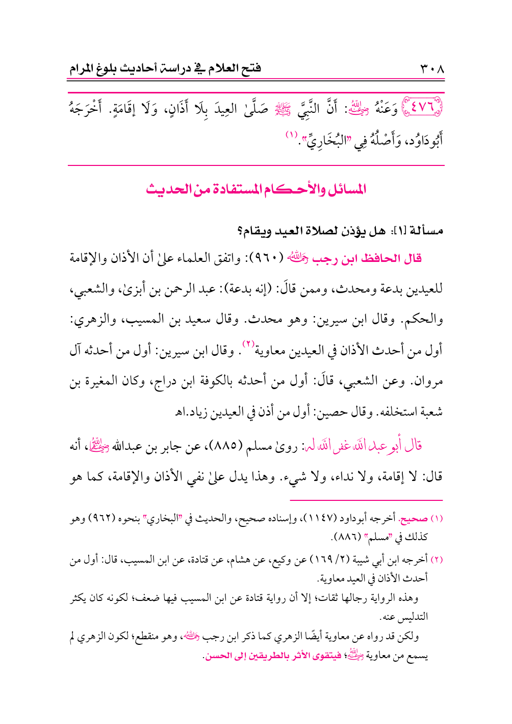 ويدل على نفي قولهم: (الصلاة جامعة)، كما هو قول الجمهور، خلافًا للشافعي، وبعض الحنابلة، وقد تقدمت هذه المسألة في كتاب الأذان من هذا الكتاب، ولله الحمد.