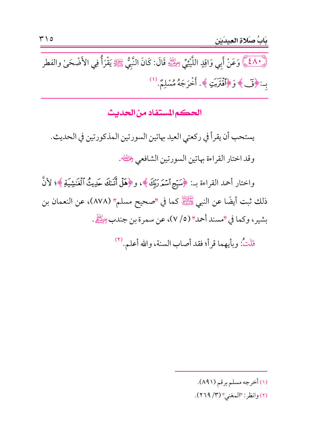 (¬١) أخرجه البخاري برقم (٩٨٦). وقد اختلف في صحابيه، فقيل عن جابر، وقيل عن أبي هريرة.