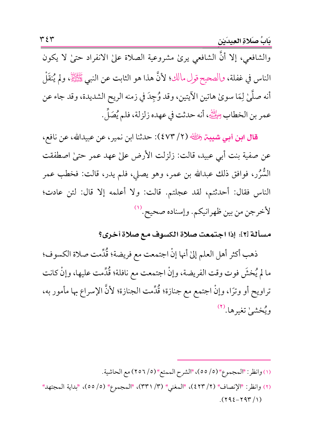 (¬٢) ضعيف. أخرجه أحمد (١/ ٢٣٠)، وأبوداود (١١٦٥)، والنسائي (٣/ ١٦٣)، والترمذي (٥٥٨) (٥٥٩)، وابن ماجه (١٢٦٦)، وأبوعوانة (٢/ ١٢٢) وابن حبان (٢٨٦٢)، من طريق هشام بن إسحاق بن عبدالله بن كنانة، عن أبيه، عن ابن عباس به. وإسناده ضعيف؛ لأن هشام بن إسحاق مجهول الحال، وأبوه لم يسمع من ابن عباس. قال أبوحاتم: إسحاق بن عبدالله، عن ابن عباس مرسل.