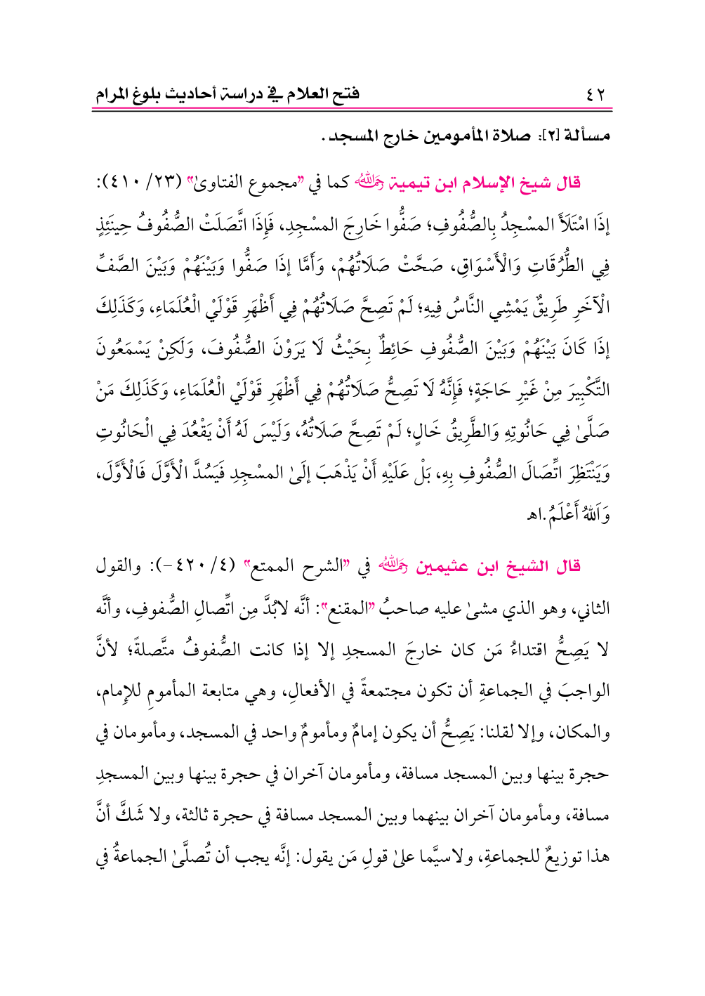 مسألة [٢]: صلاة المأمومين خارج المسجد.