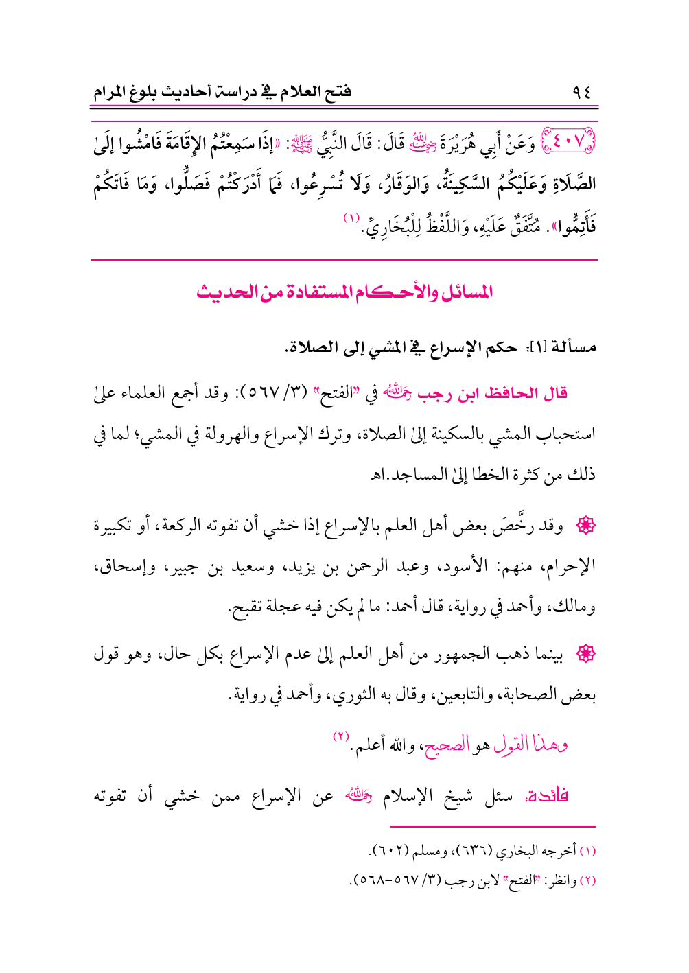 فائدة: سئل شيخ الإسلام -رحمه الله- عن الإسراع ممن خشي أن تفوته