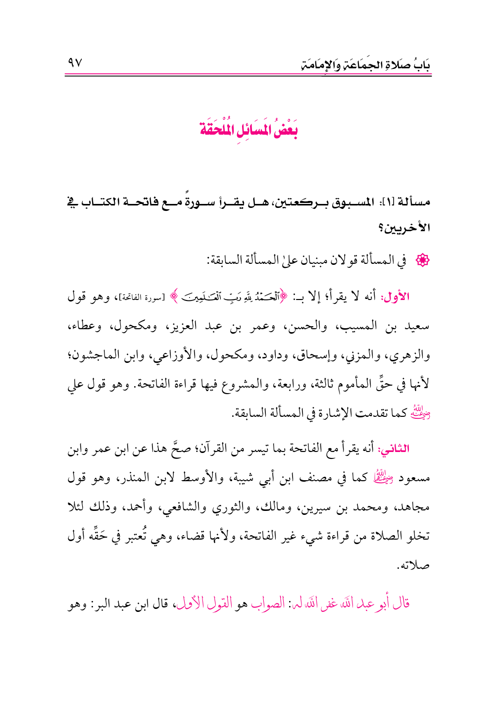 قال أبو عبد الله غفر الله له: الصواب هو القول الأول، قال ابن عبد البر: وهو