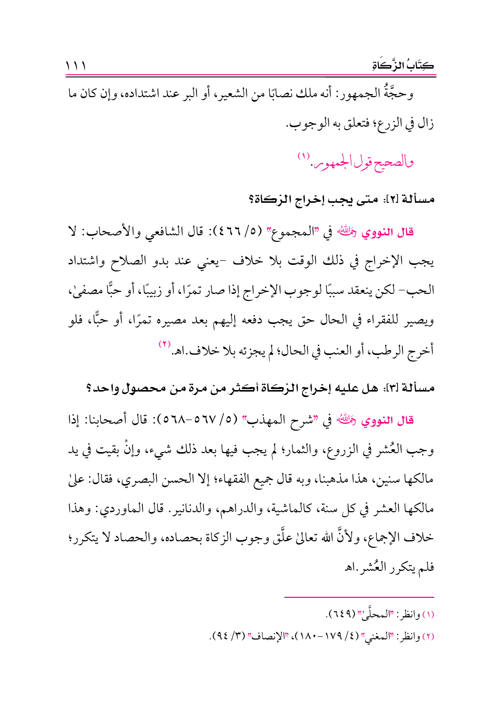 مسألة [٢]: متى يجب إخراج الزكاة؟