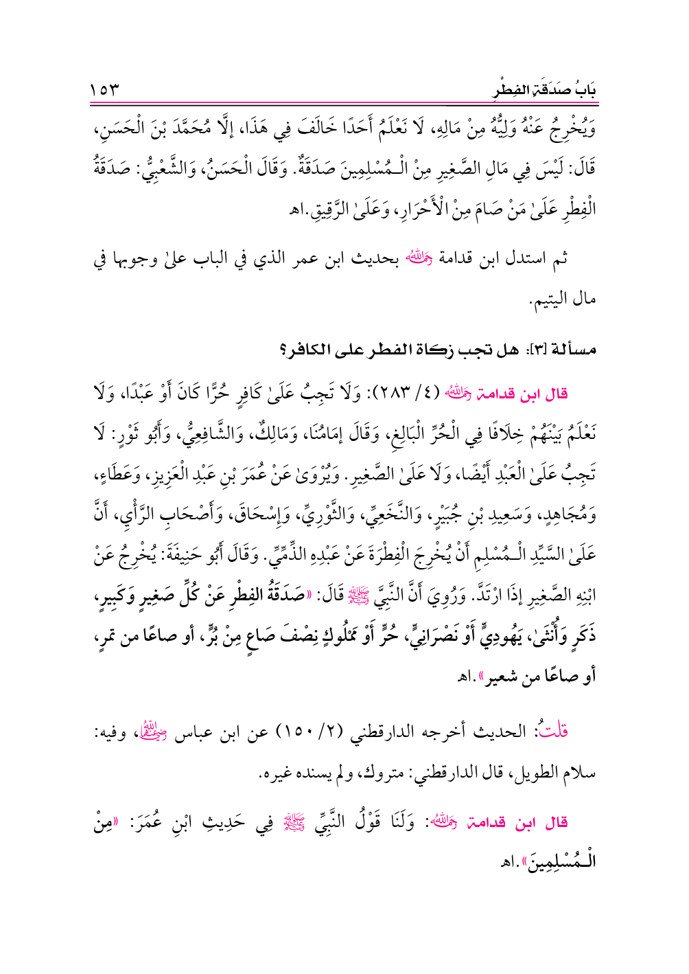 قال ابن قدامة -رحمه الله-: وَلَنَا قَوْلُ النَّبِيِّ - صلى الله عليه وسلم - فِي حَدِيثِ ابْنِ عُمَرَ: «مِنْ الْمُسْلِمِينَ».اهـ