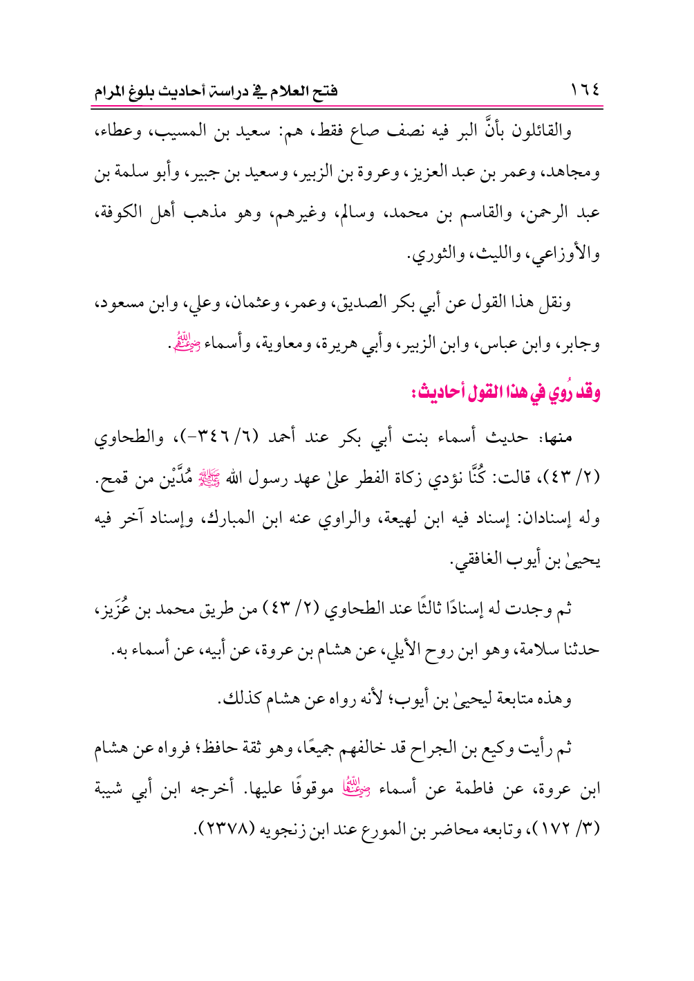 منها: حديث أسماء بنت أبي بكر عند أحمد (٦/ ٣٤٦ - )، والطحاوي (٢/ ٤٣)، قالت: كُنَّا نؤدي زكاة الفطر على عهد رسول الله - صلى الله عليه وسلم - مُدَّيْن من قمح. وله إسنادان: إسناد فيه ابن لهيعة، والراوي عنه ابن المبارك، وإسناد آخر فيه يحيى بن أيوب الغافقي.