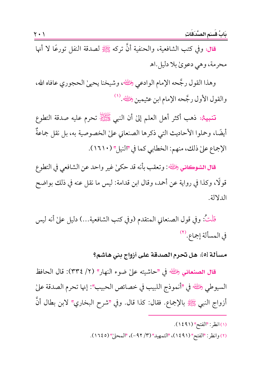 تنبيه: ذهب أكثر أهل العلم إلى أن النبي -صلى الله عليه وعلى آله وسلم- تحرم عليه صدقة التطوع أيضًا، وحملوا الأحاديث التي ذكرها الصنعاني على الخصوصية به، بل نقل جماعةٌ الإجماع على ذلك، منهم: الخطابي كما في «النيل» (١٦١٠).