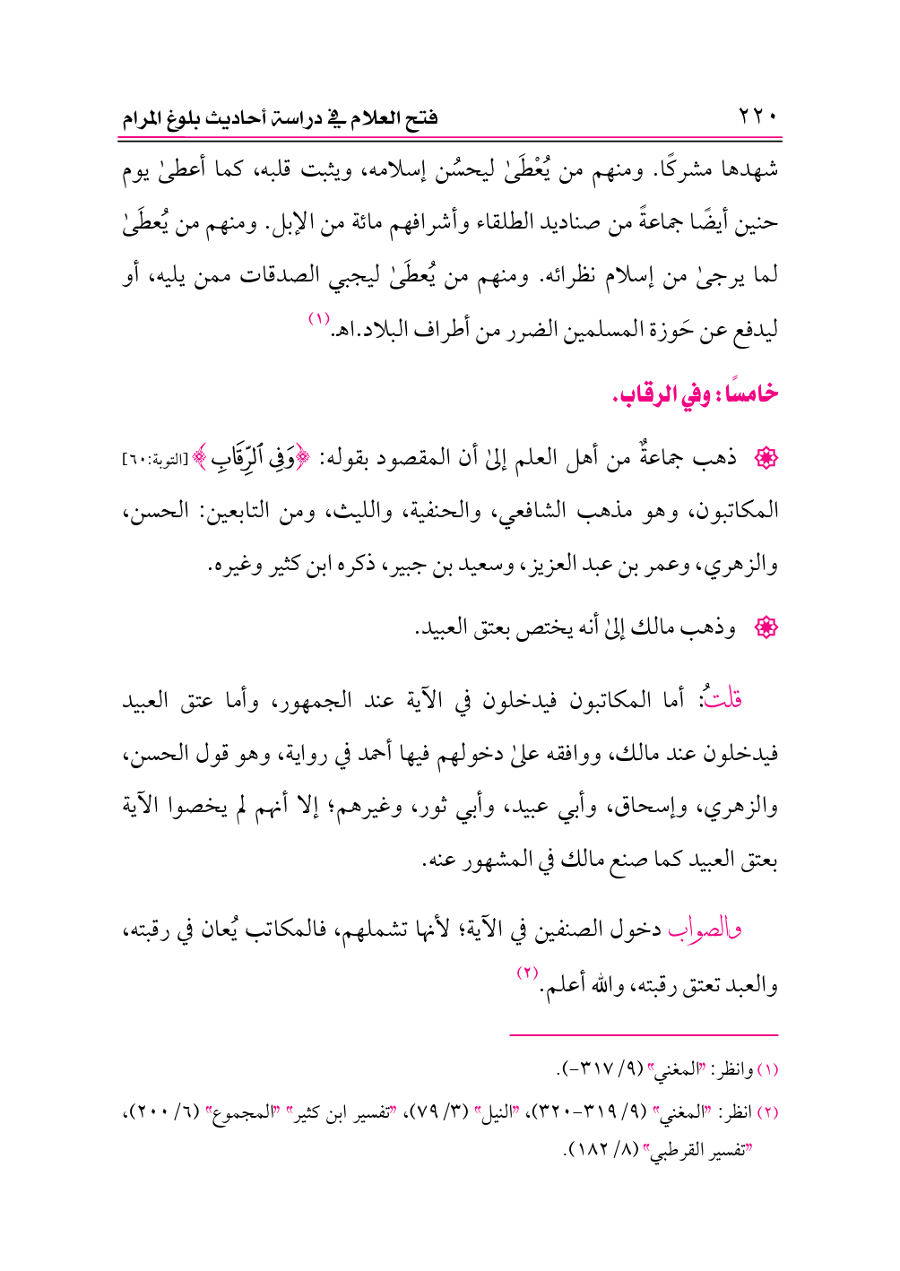 قلتُ: أما المكاتبون فيدخلون في الآية عند الجمهور، وأما عتق العبيد فيدخلون عند مالك، ووافقه على دخولهم فيها أحمد في رواية، وهو قول الحسن، والزهري، وإسحاق، وأبي عبيد، وأبي ثور، وغيرهم؛ إلا أنهم لم يخصوا الآية بعتق العبيد كما صنع مالك في المشهور عنه.