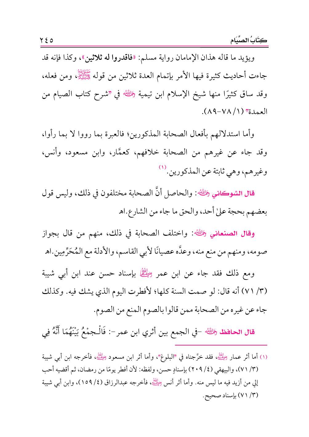 وأما استدلالهم بأفعال الصحابة المذكورين؛ فالعبرة بما رووا لا بما رأوا، وقد جاء عن غيرهم من الصحابة خلافهم، كعمَّار، وابن مسعود، وأنس، وغيرهم، وهي ثابتة عن المذكورين. (¬١)