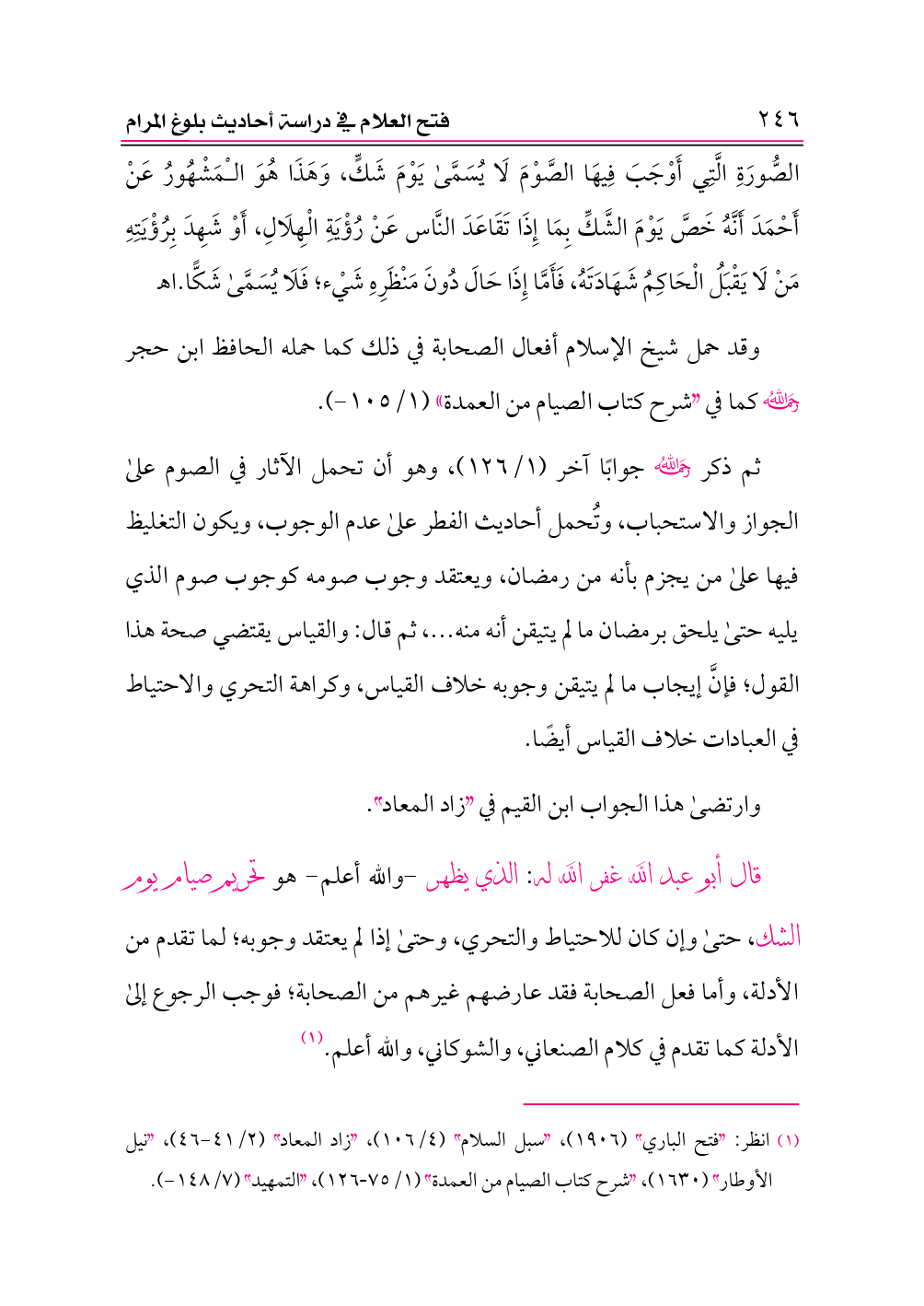 (¬١) انظر: «فتح الباري» (١٩٠٦)، «سبل السلام» (٤/ ١٠٦)، «زاد المعاد» (٢/ ٤١ - ٤٦)، «نيل الأوطار» (١٦٣٠)، «شرح كتاب الصيام من العمدة» (١/ ٧٥ - ١٢٦)، «التمهيد» (٧/ ١٤٨ - ).