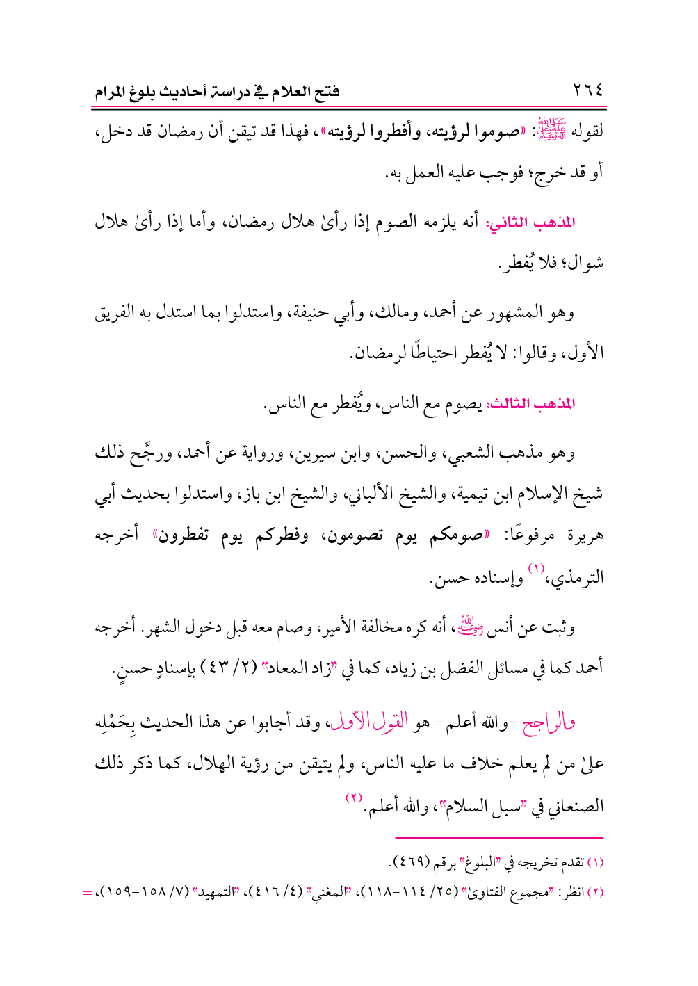 (¬٢) انظر: «مجموع الفتاوى» (٢٥/ ١١٤ - ١١٨)، «المغني» (٤/ ٤١٦)، «التمهيد» (٧/ ١٥٨ - ١٥٩)، «سبل السلام» (٣/ ٢١٧ - ٢١٨)، «المحلَّى» (٧٥٧)، «شرح كتاب الصيام من العمدة» (١/ ١٥٤ - ) «الشرح الممتع» (٦/ ٣٢٨ - ٣٣٠).