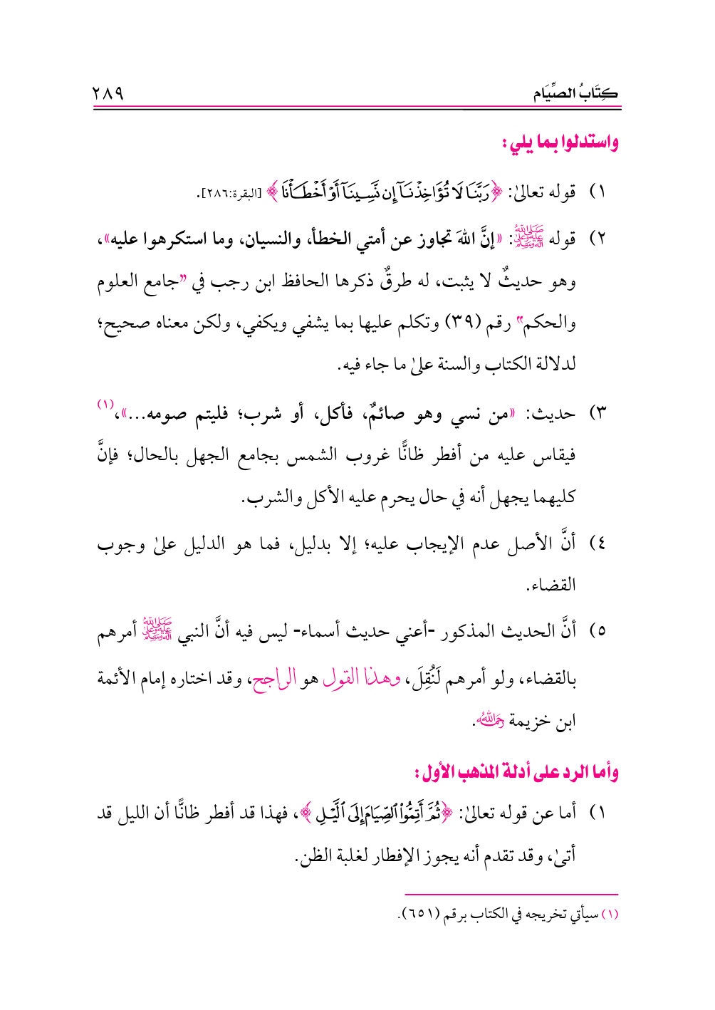 ٥) أنَّ الحديث المذكور أعني حديث أسماء ليس فيه أنَّ النبي -صلى الله عليه وعلى آله وسلم- أمرهم بالقضاء، ولو أمرهم لَنُقِلَ، وهذا القول هو الراجح، وقد اختاره إمام الأئمة ابن خزيمة -رحمه الله-.